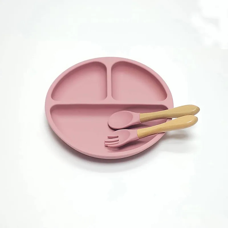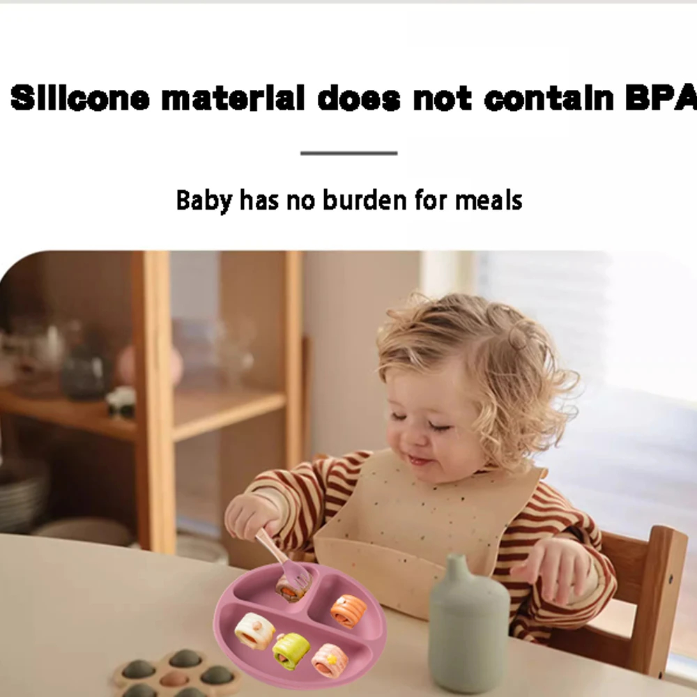 3pcs/Set Silicone Dinner Plate 3 Compartments Reinforced Suction Children's Silicone Bowl-BC022 - BC022