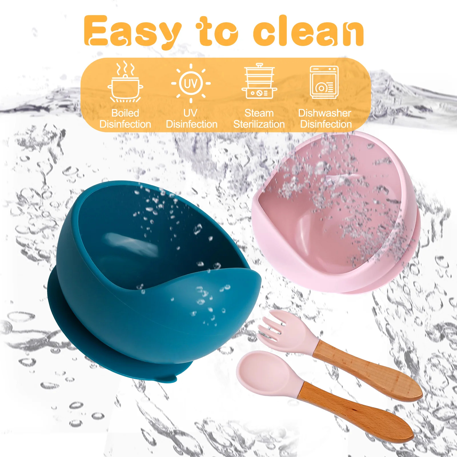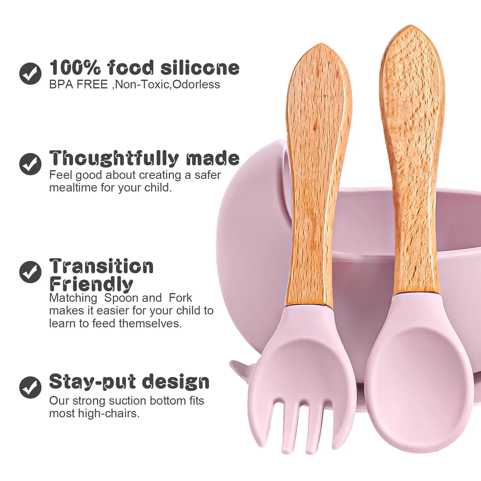 3PCS/Set Silicone Baby Feeding Bowl Tableware for Kids Waterproof Suction Bowl With Spoon-BC021 - BC021