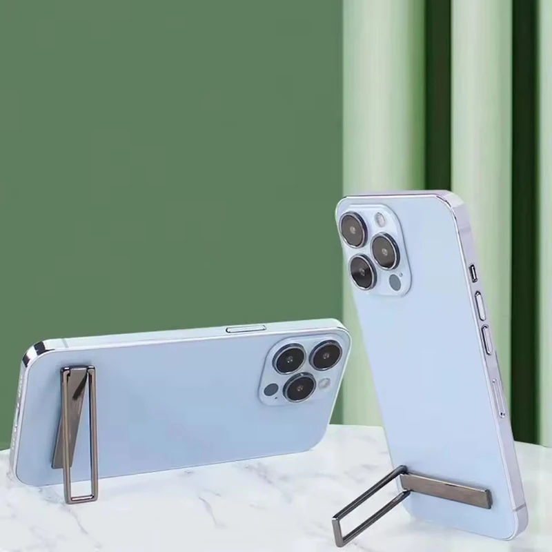 Description : Ultra-thin invisible, thickness of only 0.6mm High quality high elastic stainless steel material, with its own elasticity, one key folding Horizontal and vertical dual-use switch at will, 0-90 ° free adjustment, free hands Specification : Size: 59mm*18mm*0.6mm Material: Stainless steel Quantity: 2pcs